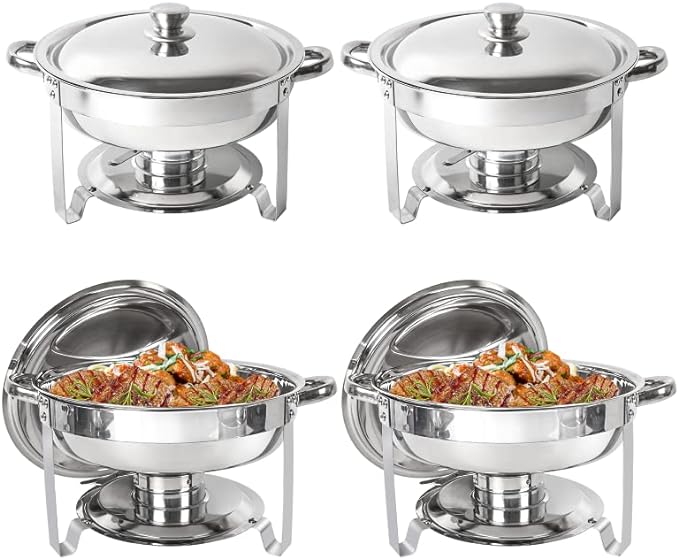 Chafing Dish Buffet Set 4 Pack, 5QT Round Stainless Steel Chafer for Catering