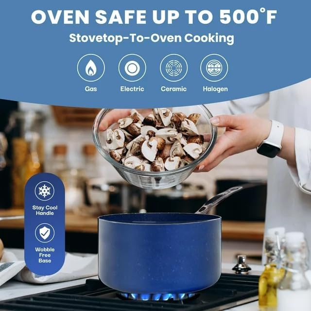 - Stovetop & Oven safe – compatible with gas, electric, glass cooktops & oven safe up to a sizzling up to 500° Fahrenheit, lids included!