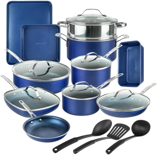 Cookware Sets Pots and Pans Set 20 Piece Complete Cookware Bakeware Set Nonstick Dishwasher Oven Safe Blue
