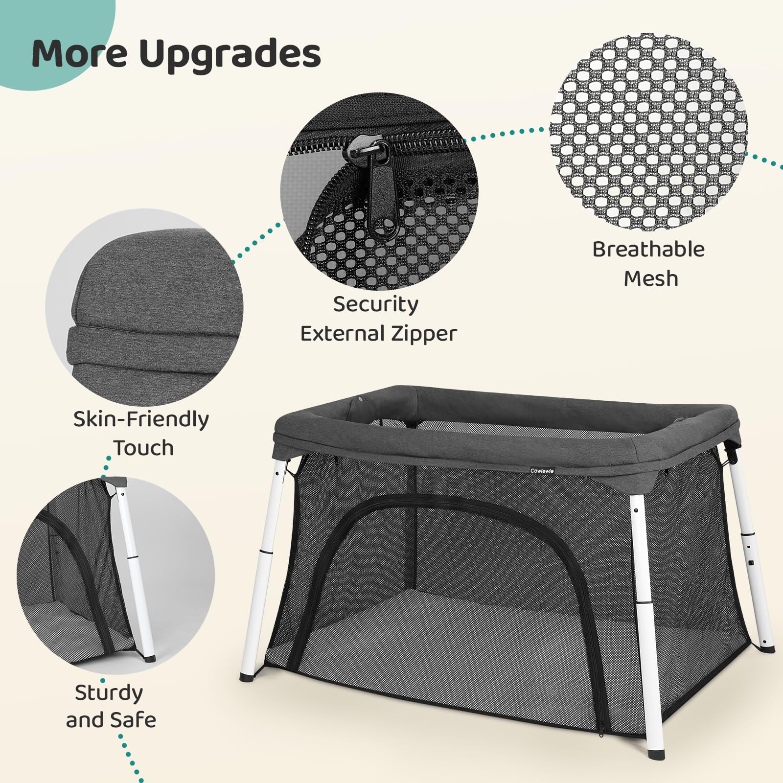 - 【CERTIFIED SAFE & LOW-VOC】It’s surprising, but some baby products, including play yards, still contain harsh chemicals. That didn’t fly with our team, so we had the Cowiewie tested, and certified, ASTM/CPSIA. Report No: EQO23100443P, you can enter the number to query through the website or tell us through the order number, and we will send you the complete certificate. What does that mean? No PVC, lead, formaldehyde, mercury, arsenic, phthalates, or other dangerous chemicals. Whether resting or playing, the Lotus truly creates a safe and comfortable environment for your little one