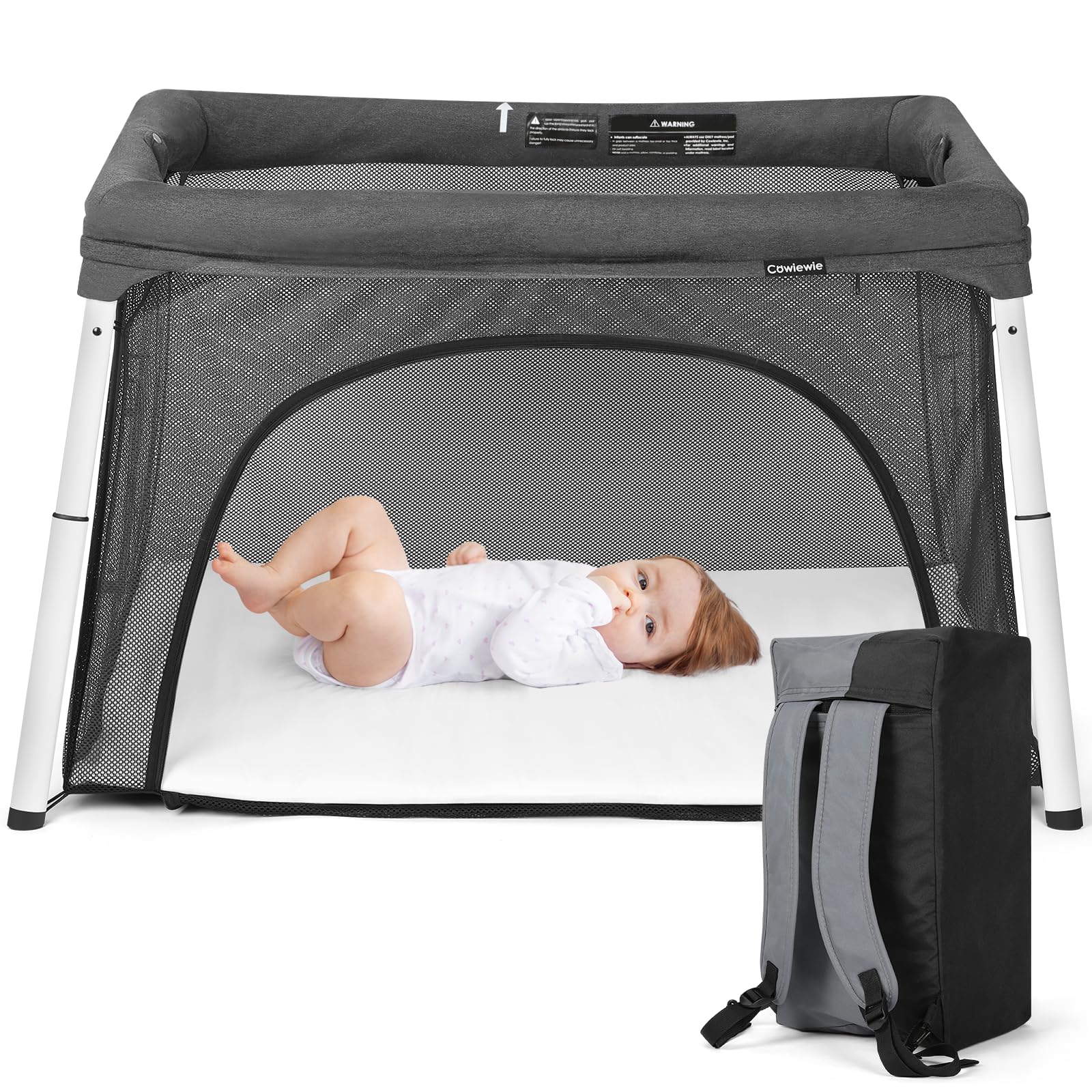 - 【WORRY-FREE AIRPORT TRAVEL】3D Z-Fold Technology allows it to fold compact enough to carry through airports, making the Travel Crib a baby travel essential. The durable yet lightweight design weighs only 15 lbs and can be set up in just 20 seconds! The foldable crib’s ability to be carried as a lightweight backpack allows you to travel hands-free with ease.