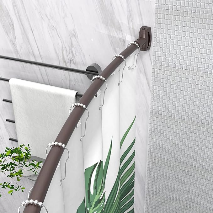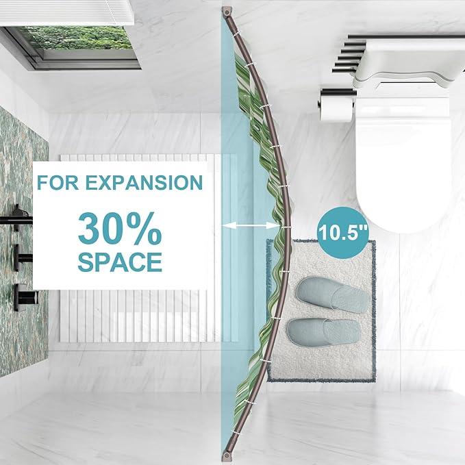 - 【Extra Shower Space】 Compared with traditional straight curtain rods, the curved design provide an extra 10.5 inches of shower space! Shower curtain rod curves around your tub, you won’t touch the damp shower curtain when you raise your elbows, making your bathing experience more enjoyable.