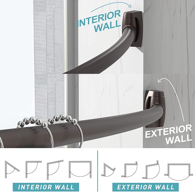- 【Multi-purpose】 This curved shower rod is concise design, easily match home decor. Suitable for bathroom, shower stall, bathtub, clothing stores, fitting rooms and more. Can be used indoor and outdoor.