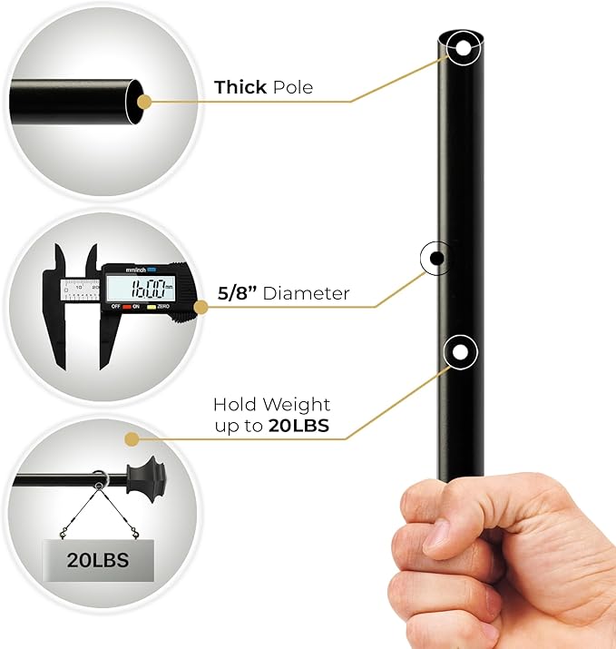 - Heavy-Duty Construction: These drapery rods are built to last. Their 5/8-inch diameter ensures sturdiness and can support even heavy curtains or drapes, ensuring they stay securely in place.