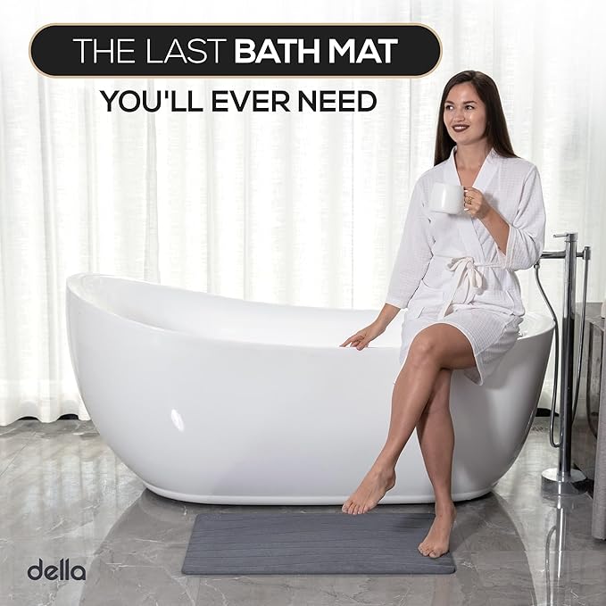 - BUILT TO LAST: This diatomaceous Earth bathmat will grace your bathroom for years. If you’re not thrilled with its look or effectiveness, just let us know within 30 days and we’ll make it right with a full refund or replacement. Bathmats don’t have to be boring; click Buy Now, and elevate your bathroom with a Della Quick-Dry Stone Bath Mat today!
