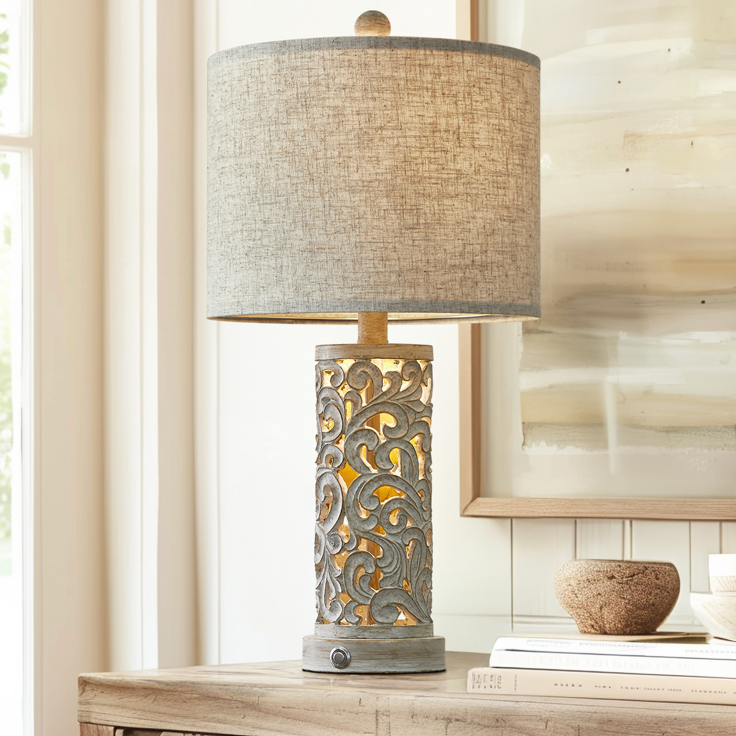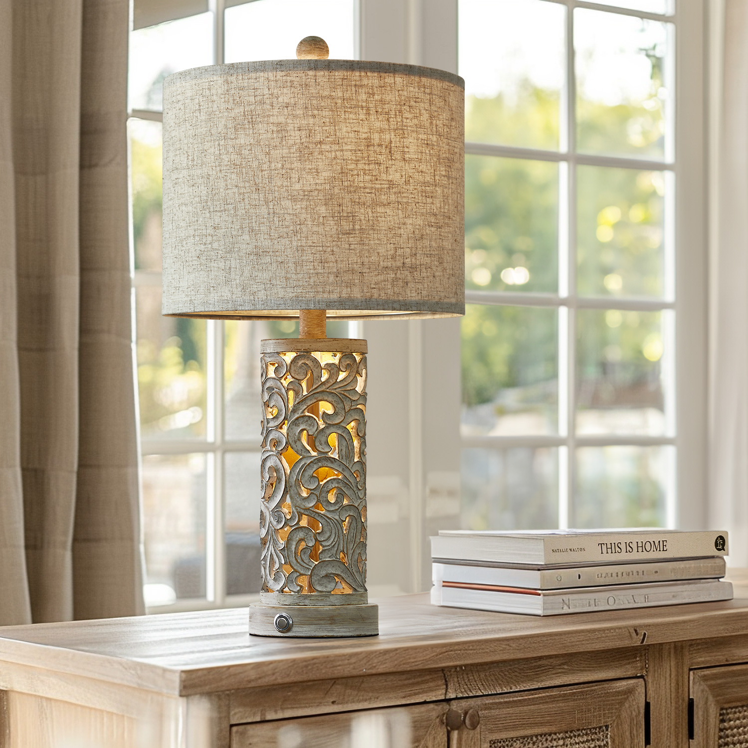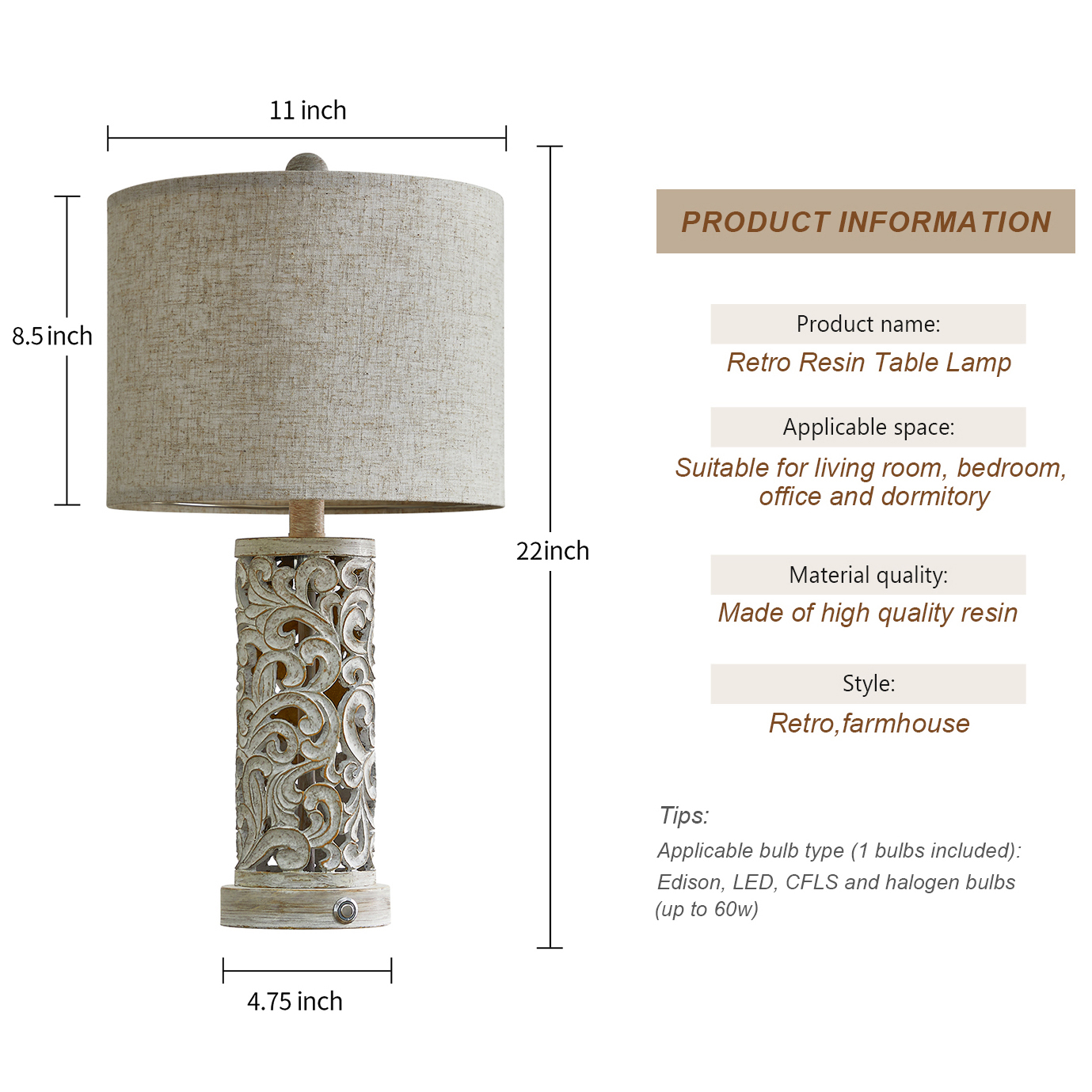 - Farmhouse Table Lamp : The bedside lamp is designed with a vintage floral hollow resin lamp body and drum linen shade, highlighting the rustic and retro style. Its unique design makes it perfect decoration in your home, adding light and stylish to your room, perfect for the living room, bedroom, foyer, dorm room, dining room, office, study, and any room you like.