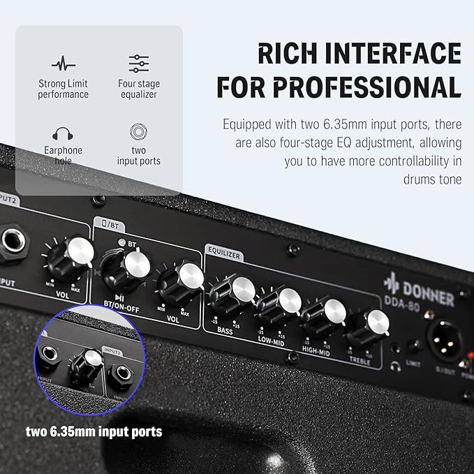 Donner Electric Drum AMP, 80-Watt Wireless Electronic Drum Amplifier Professional DDA-80