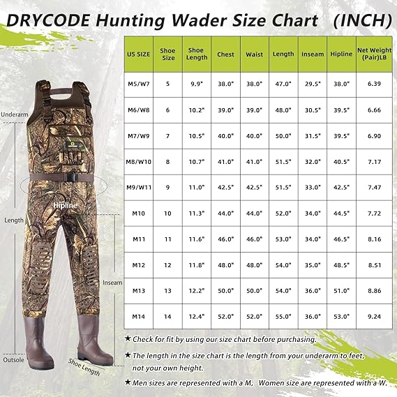 DRYCODE Waders for Men with Boots, Waterproof Neoprene Chest Waders for Women, Duck Hunting andFishing Insulated Waders SIZE 9