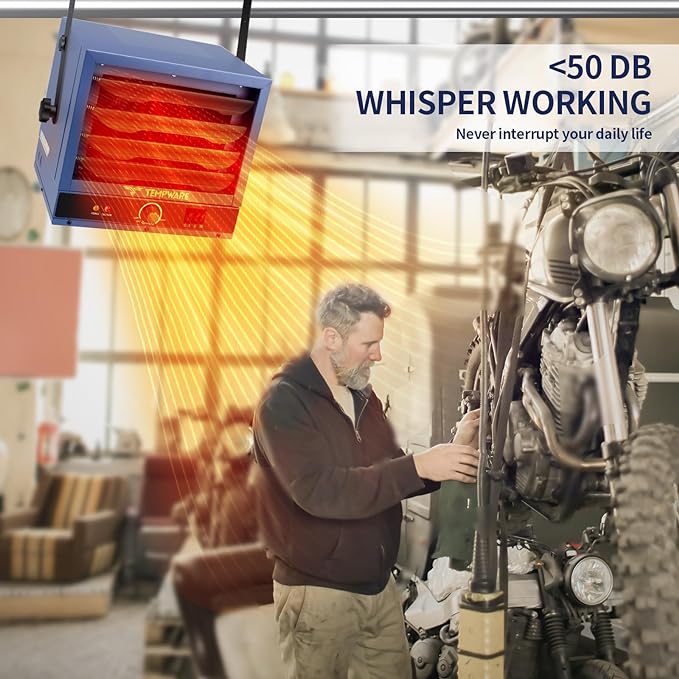 - Thermostat & Overheat Protection: Our garage heater is equipped with a built-in thermostat. You can adjust the thermostat to suit your needs and preferences. And a built-in sensor switches the device off automatically if it overheats