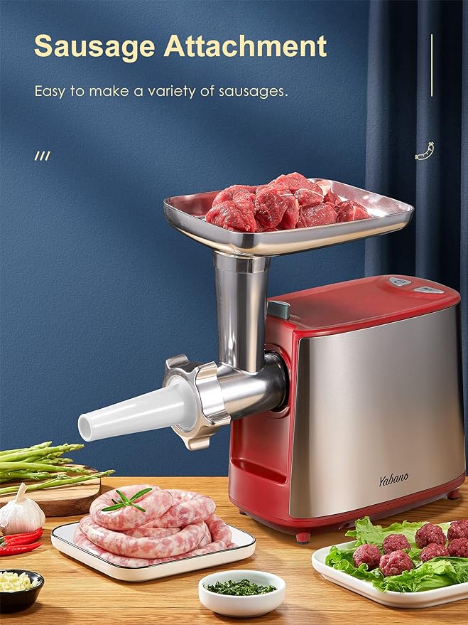 - Powerful Meat Grinder – Yabano meat grinder with 450W (3000W Max) high power Motor, helps you take less time grinding up bulk batches of meat. Sausage & Kubbe/Kibbe attachment allow you to make sausage and kubbe.
