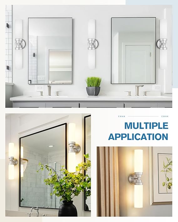- [Wide Application] Brushed nickel vanity light with elegant and rustic look, not only a farmhouse lighting, but also a modern beautiful decoration. Popularly used as a pair in halls, stairways, entrance, media TV wall, fireplace, bedside headboard, bedroom night stands, bathroom mirror side.