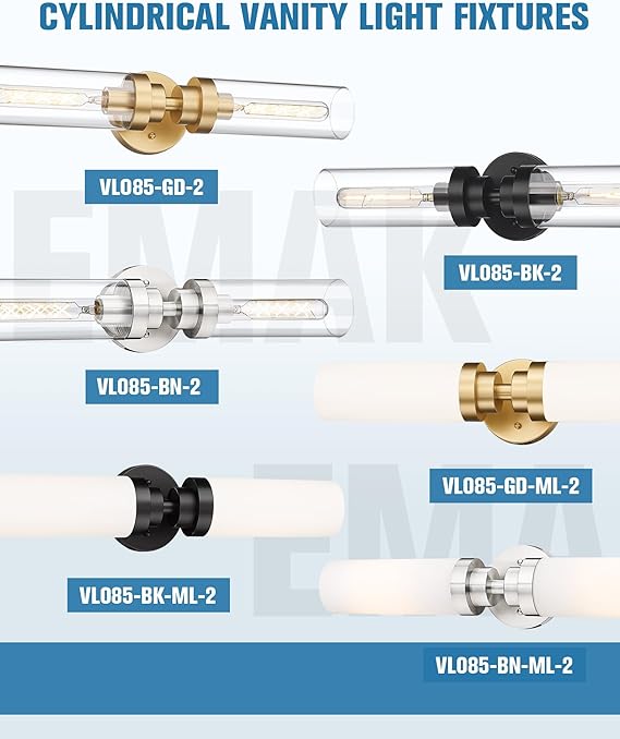 - [Trending Design] This vanity lights for bathroom is made of sturdy metal and clear glass, cylinder glass shades allow the lights to diffuse farther and brighter. We wish it would be more than a vanity light but also an art decor.
