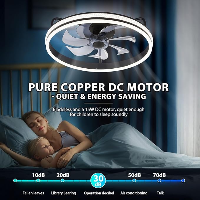 - Whisper-Quiet Sleep Companion: Crafted with bladeless design and thick PC fan blades, our fan light radiates exceptional craftsmanship. Its 15W DC motor guarantees silent operation, granting you a peaceful night\’s rest without the annoyance of buzzing fan noises.