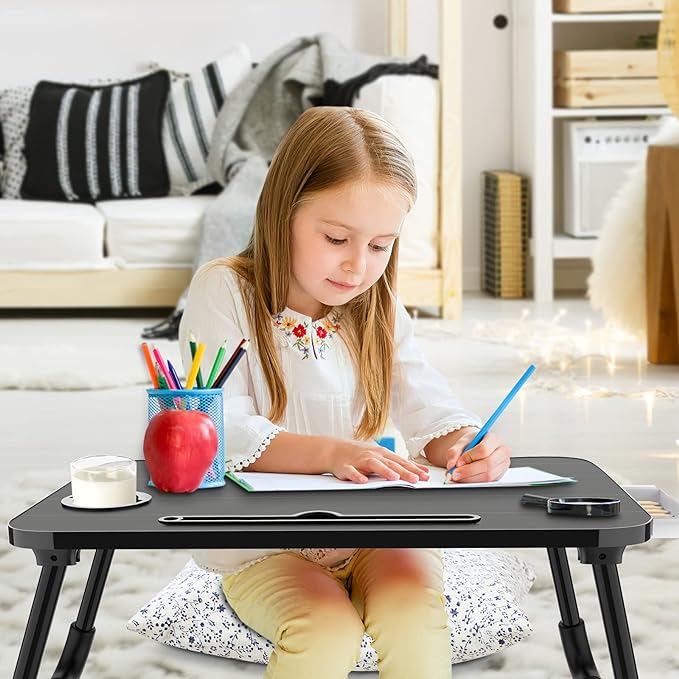 • 【Foldable & easy to use】 No assembly required, it‘s ready to go right out of the box. The foldable table legs make this foldable laptop bed table very portable and easy to store. You can take it anywhere. This lap desk doesn’t take up too much space. the foldable laptop bed table mainly used for laptop bed frames, children\’s bedside tables, mini writing desks, laptop sofa tables or book/tablet, small table, dormitory, etc. It is also a gift for children, An ideal choice for camping out.
