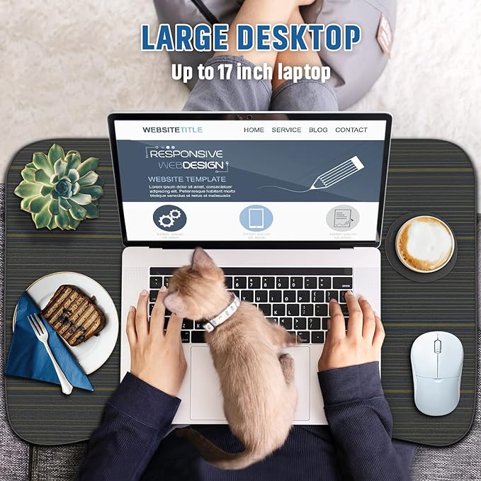 • 【Smart Design & stable support】 Curved desktop edge, ergonomic design, protective layer around the desktop, The height of the multi-function lap desk is suitable for most people. The desktop card slot design makes it easy and convenient to place mobile phones, tablet. The storage drawer under the table can store things you don’t use temporarily. The cup slot on the table can hold cups or kettles. The W-legs are very stable and the non-slip pad at the bottom makes it more stable.