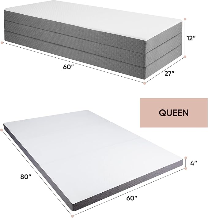Forias Memory Foam Folding Mattress Queen, 4 Inch Tri-fold Mattress