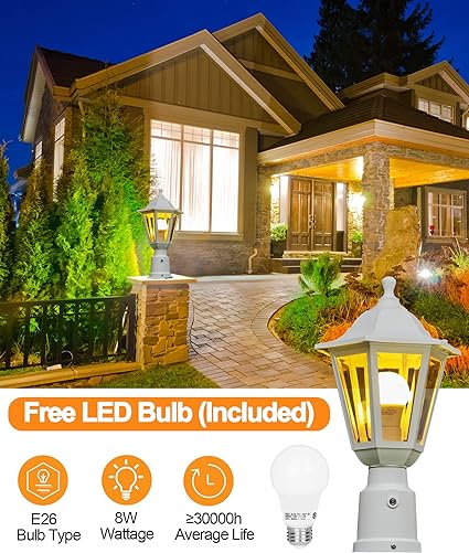 • 【LED Bulb & Pier Mount Base Included】Extra pier mount base is included as a gift. Lamp Body: 15.7″ High x 8.5″ Wide; Pier Mount Base: 3.5″ x 3.5″ x 2.3″, φ2.9″. Also with a standard E26 Base 9W 800Lm LED A19 bulb. High brightness, Warm white (3000K)