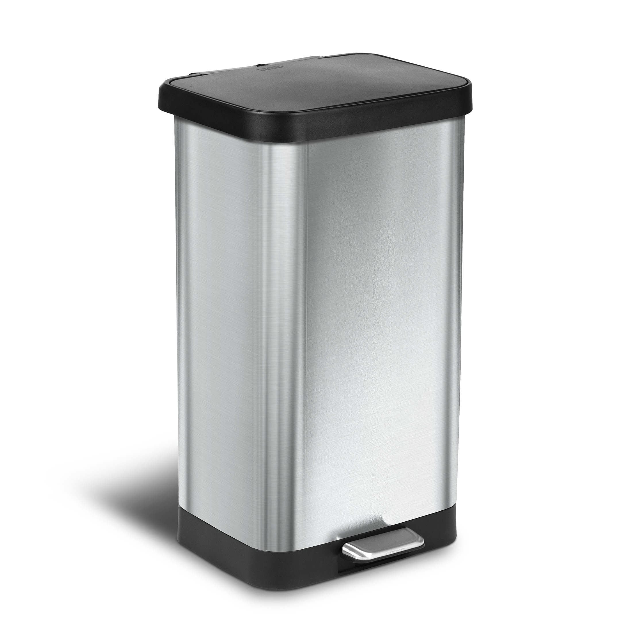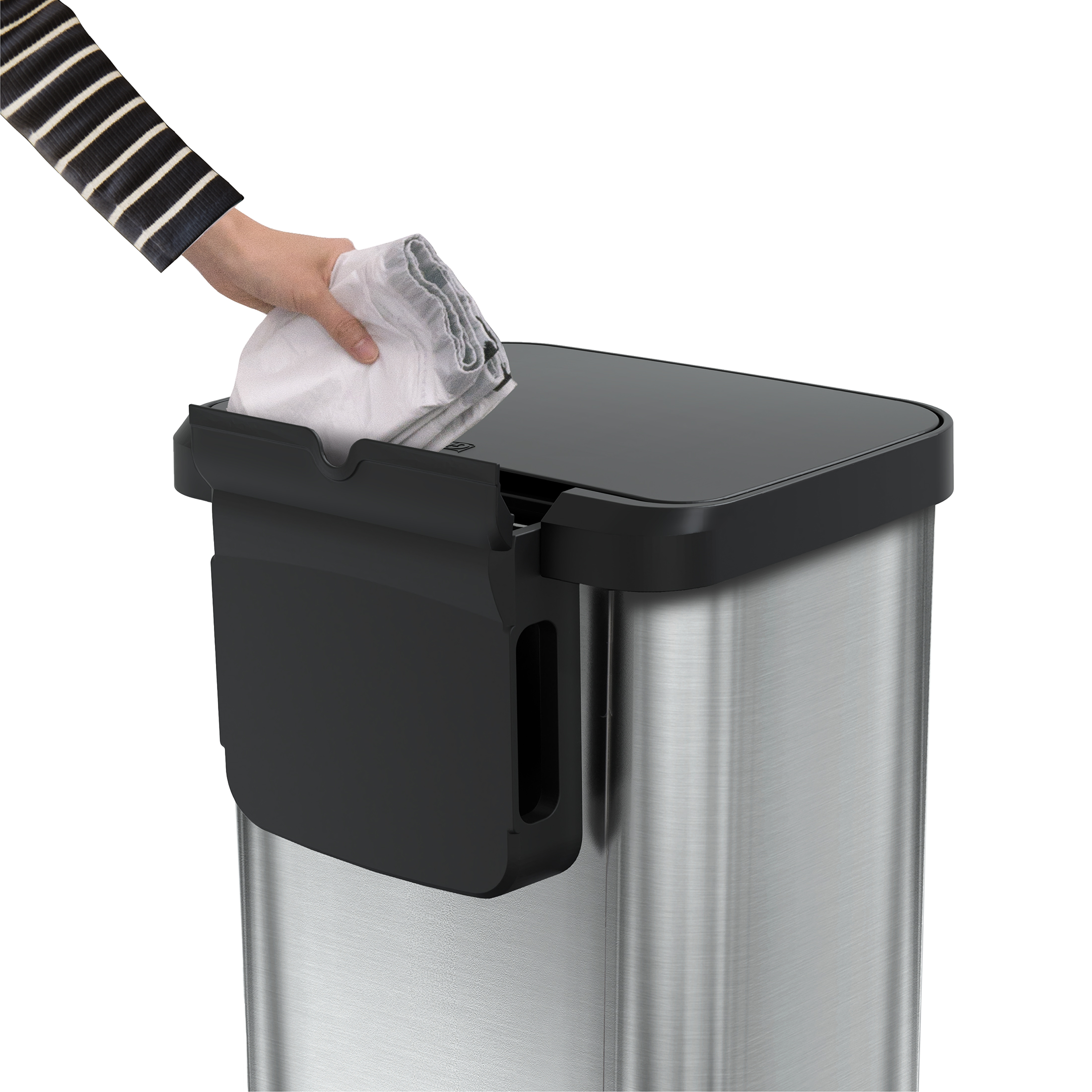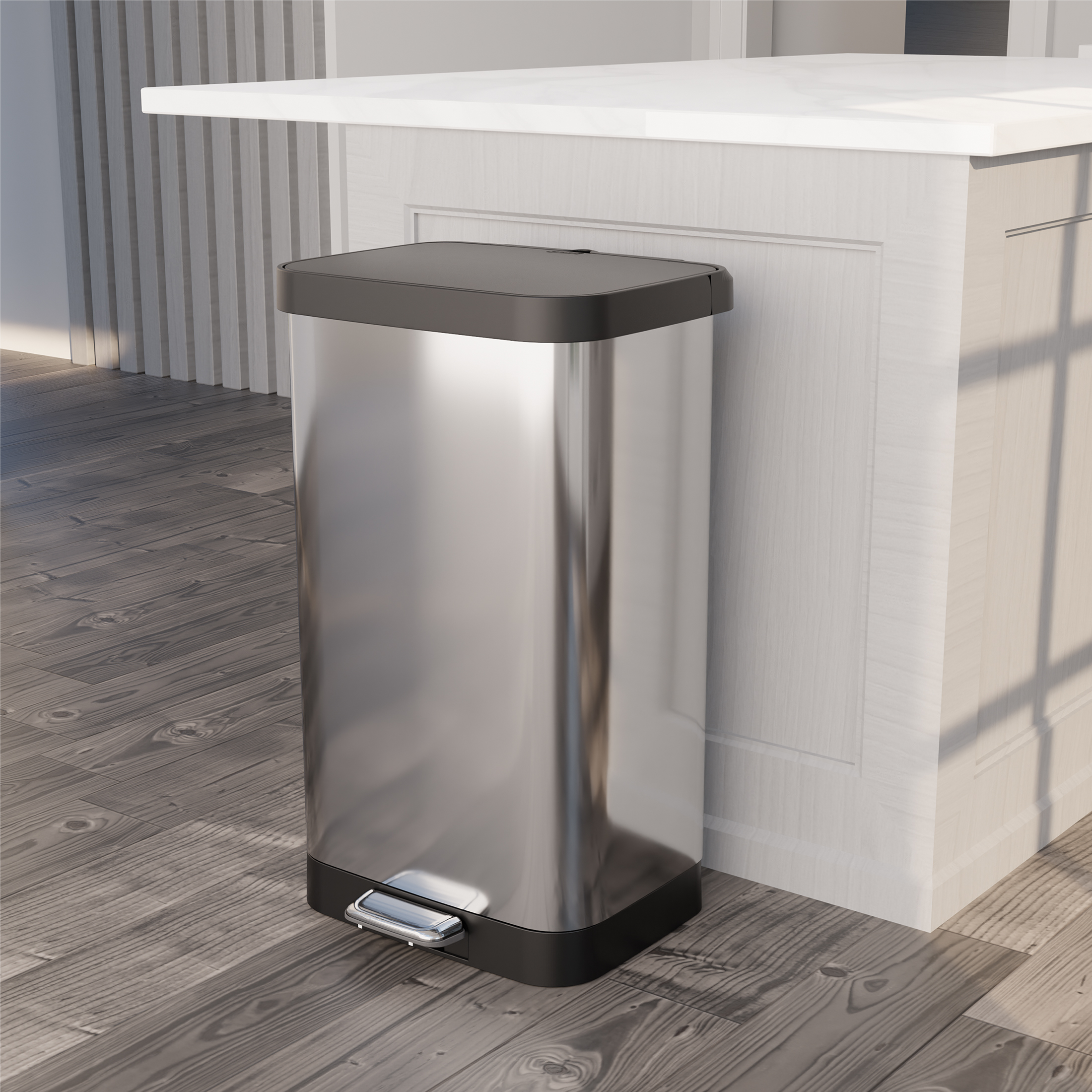 The Glad 20 gallon Stainless Steel Kitchen Step Can offers Clorox odor protection of the lid and lid frame by inhibiting growth of odor causing bacteria for the life of the can. It’s designed with a rear bag compartment that allows for time saving and easy extra bag storage and the large capacity design holds more trash than standard size trash cans. Bag Rings allows for keeping the trash bag secure, in place, and out of sight. The design of the complete lid and frame hinge allows for easy disposal of bulky trash bags and provides convenient and quiet step operation with a controlled gentle closure. Stainless Steel design is fingerprint resistant which provides for a clean and polished look.