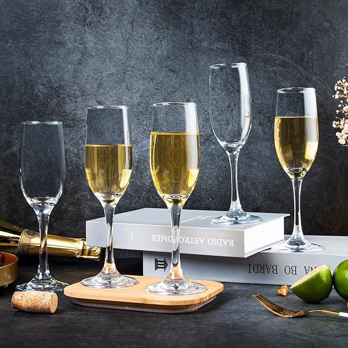 - 【ALL-PURPOSE WINE GLASSES】These bulk champagne flutes are suitable for most champagne, cocktail or sparkling. After having this set of wine glasses, you and your friends will enjoy a new experience feeling.
