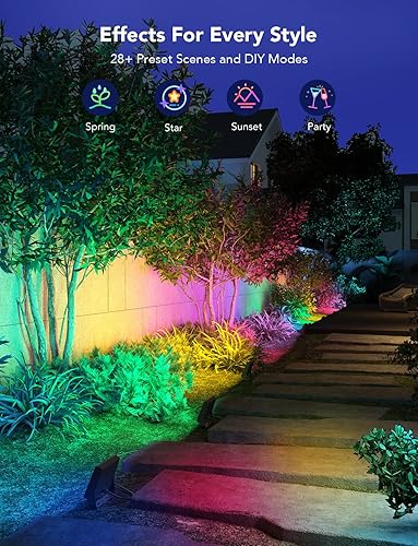 - Outdoor Festival Light Effects: Brighten up any outdoor party with these animated RGBIC flood lights. Light effects can sync to party and festival music with mic on your phone. Design your own house decorations, lighting and parties.