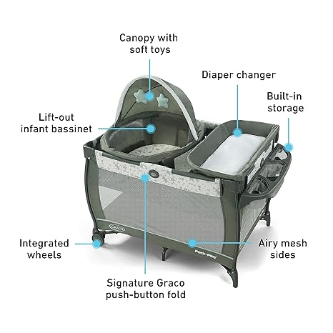 - Full-size infant bassinet provides an easy-to-reach and easy-to-view spot for your baby to sleep