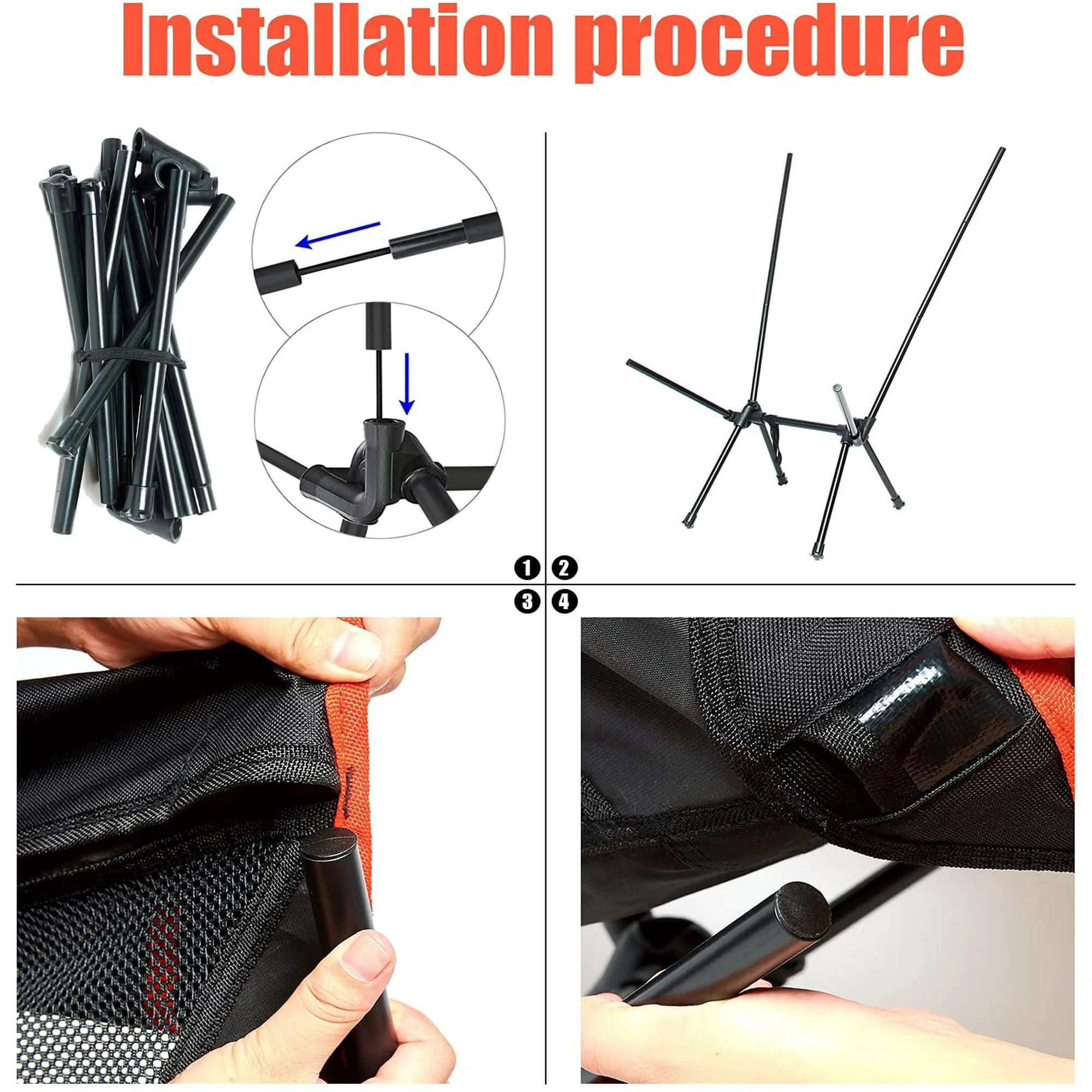 - 👍 [ Easy to install and fold ] Take 30 seconds to unfold these metal tubes, then put metal tube into the fabric cover by stretching 2 straps. The installation steps are very simple, it only takes a few minutes to install or fold it. There are similar instructions in the package. You may take a few seconds to read and learn how to install it