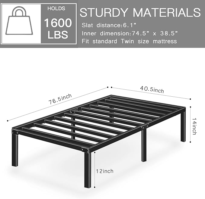 HAAGEEP Black Twin Metal Bed Frame 14 Inch Bed Frame