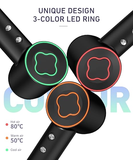 - Intelligent Temperature Control: Cosy Companions professional hairdryer measures the air temperature over 100 times per second and regulates the heat through a high performance chip control system. Avoid overheating damage to your hair and protect your hair. Our hair dryer has 3 different LED lights built in, and you can turn the LEDs into different colors by switching the heat button. Red means hot air, yellow is warm air and green is cool air. Enjoy blow-drying your hair in comfort!(diffuser)