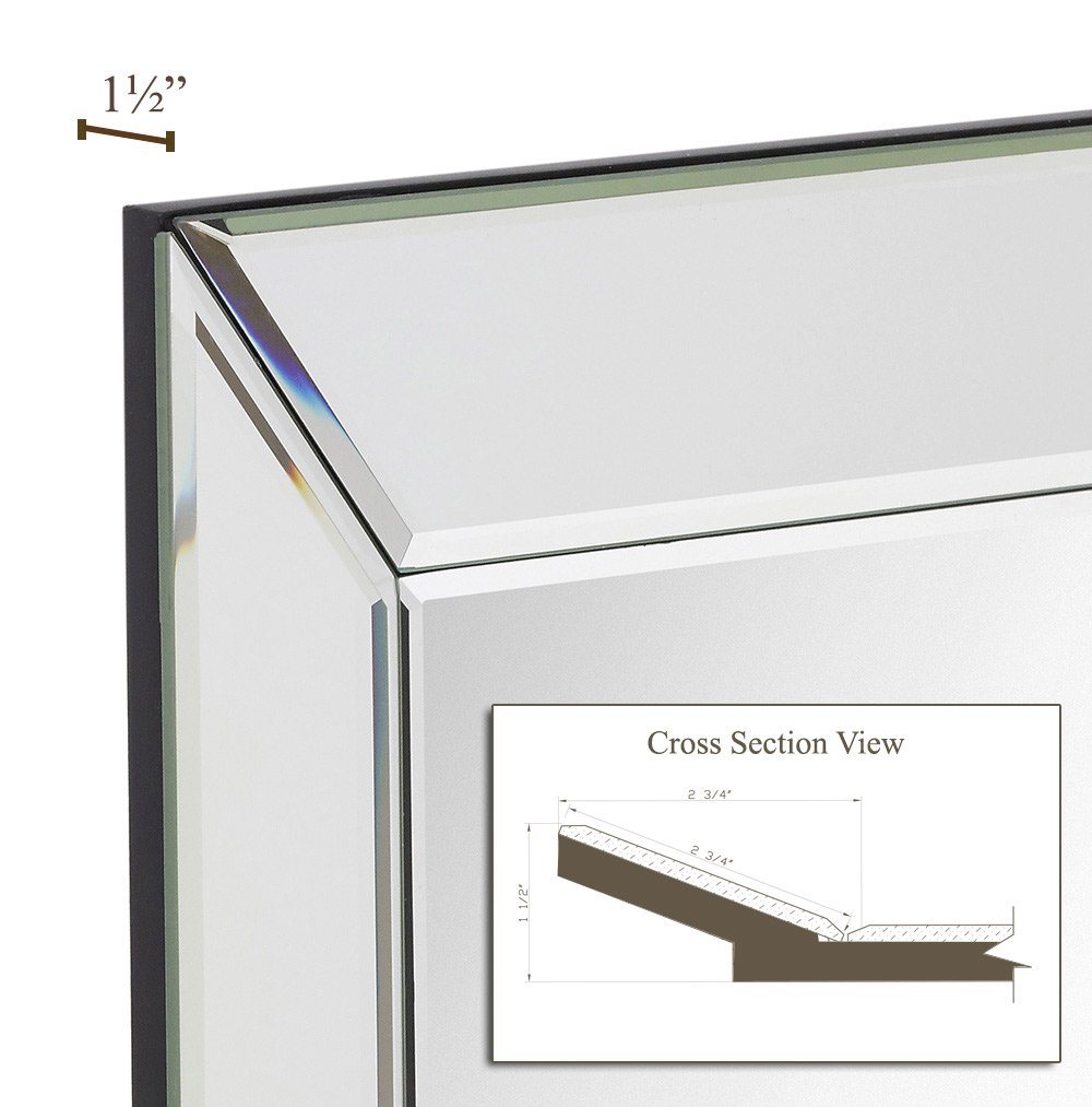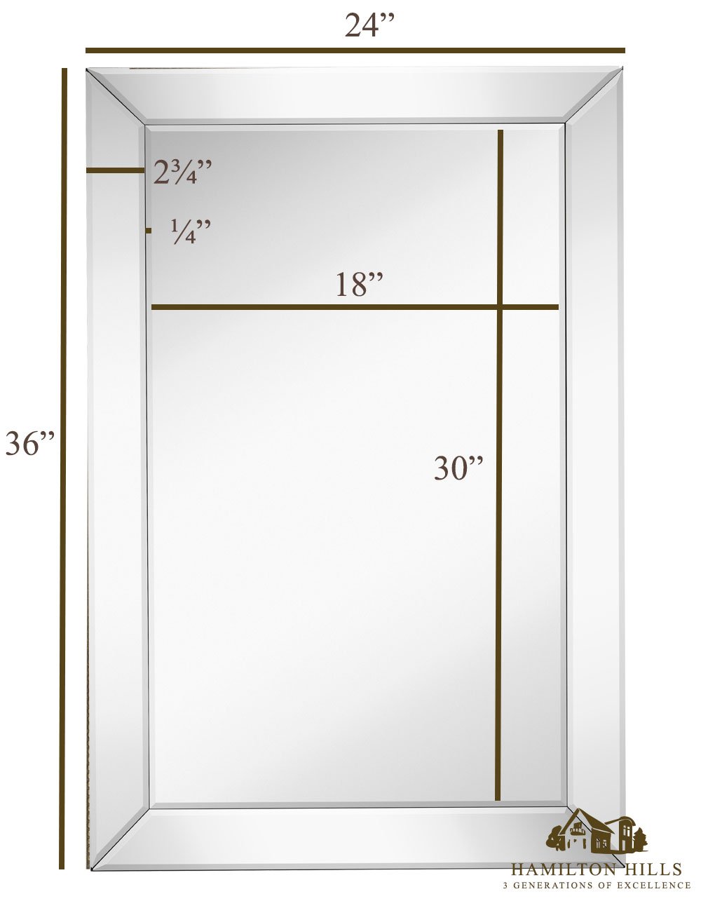 • Sophisticated Design Our 24×36 mirror, its a rectangle beveled mirror and surrounded by 3 inch mirrored bevelled edges. The glass rectangle mirror is backed by our solid core wood for reinforcement and stability.