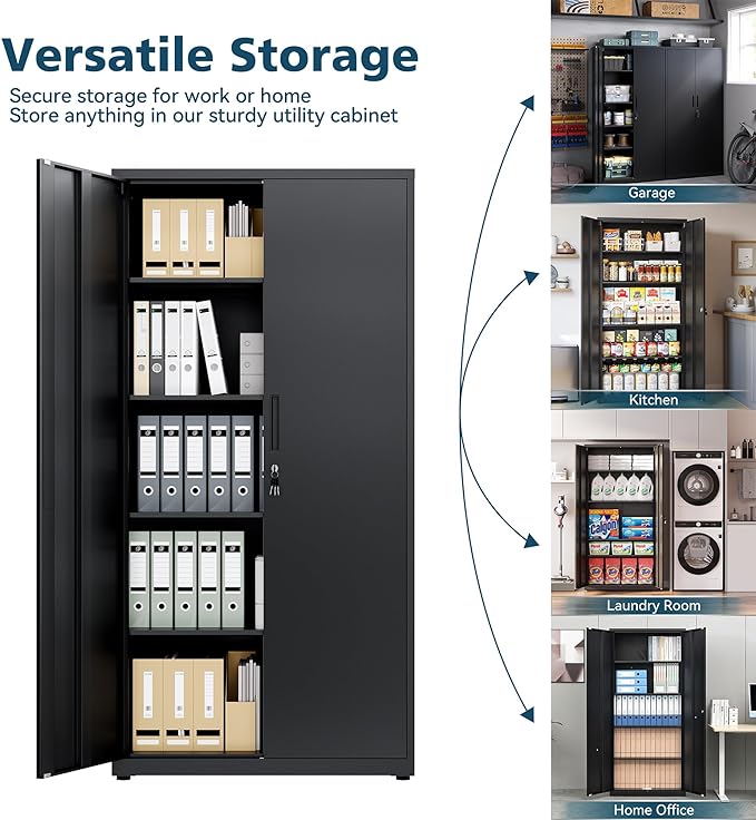 - MULTIFUNCTIONAL LOCKER: The storage cabinet has a simple and practical design, it can be widely used in office, garages, basements, archives, warehouse, or anywhere you need additional storage
