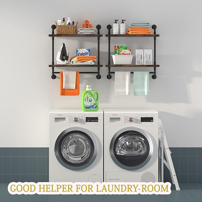 • 【Easy to Assemble & Clean 】Helsin bathroom shelves come with step-by-step instructions and all fittings, including iron pipes, flanges, planks, level and screws. Just prepare the drill, and follow the installation steps, you will find installing the shelves is a breeze. To clean it, just wipe with a soft dry cloth to get rid of the dust and grime easily.