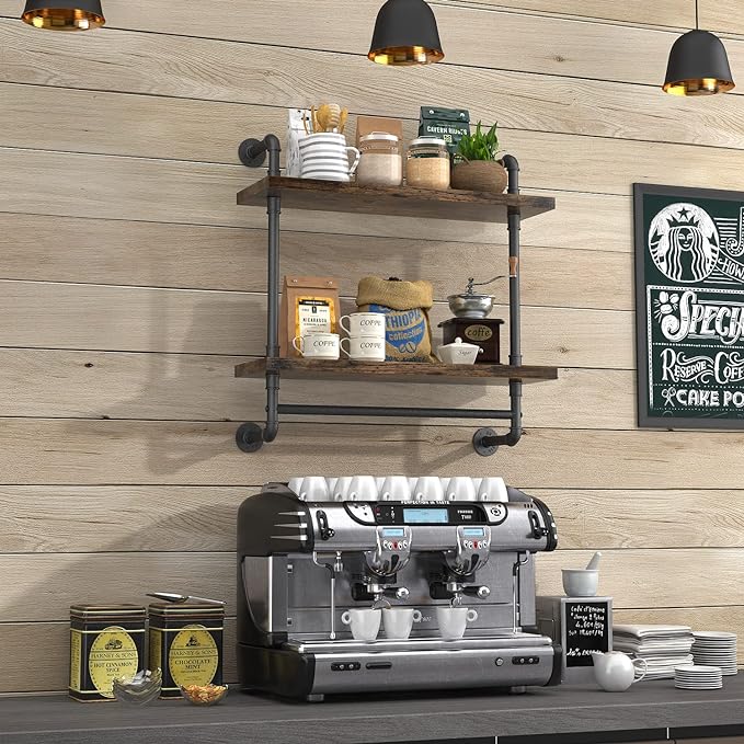 • 【Retro Style 】Helsin 2 Tier industrial pipe shelving has a unique water pipe design, Iron pipes and wood composition in vintage style, chic and artistic, great for storage and decorations. It can also be used outdoors. Extensively anti-rust treatment.