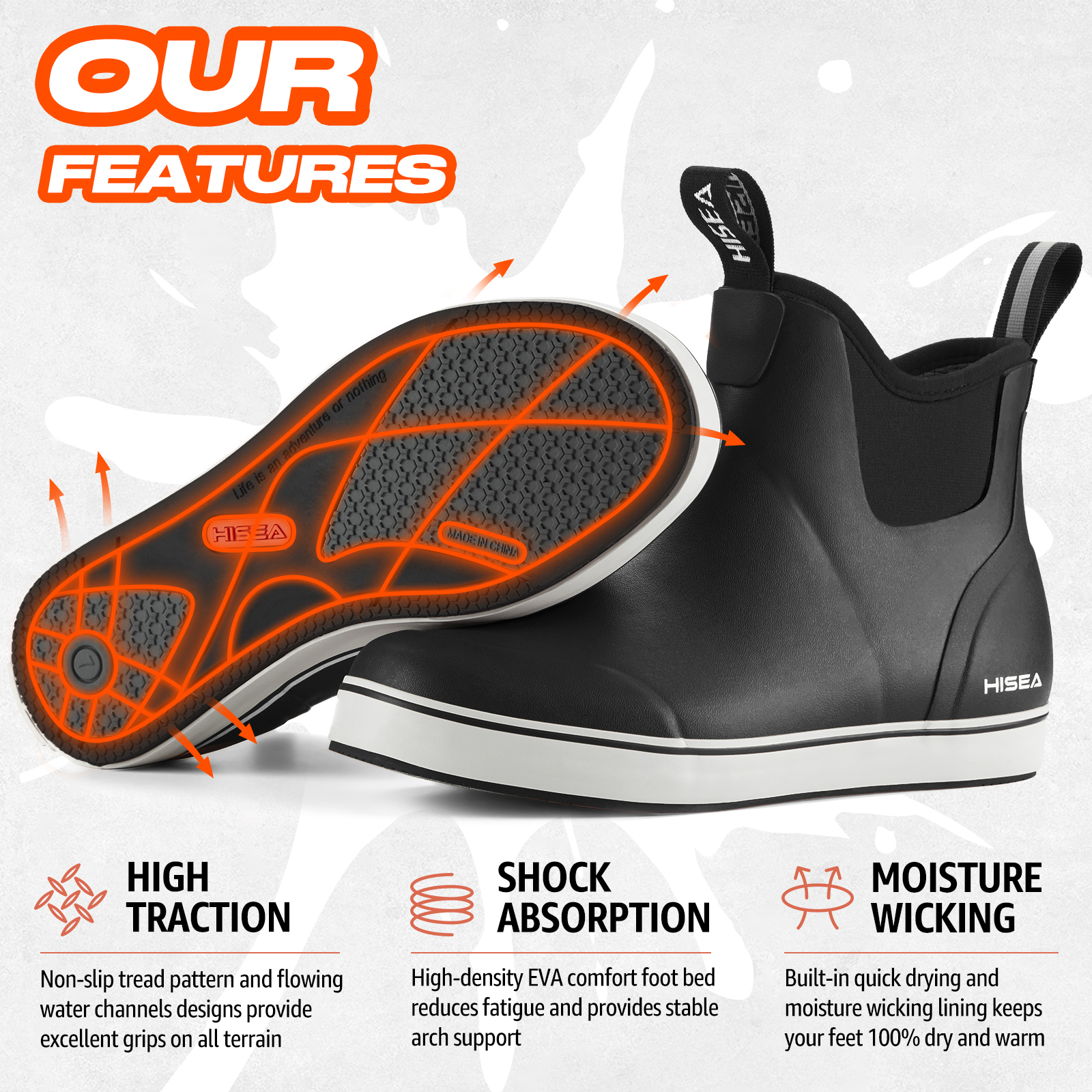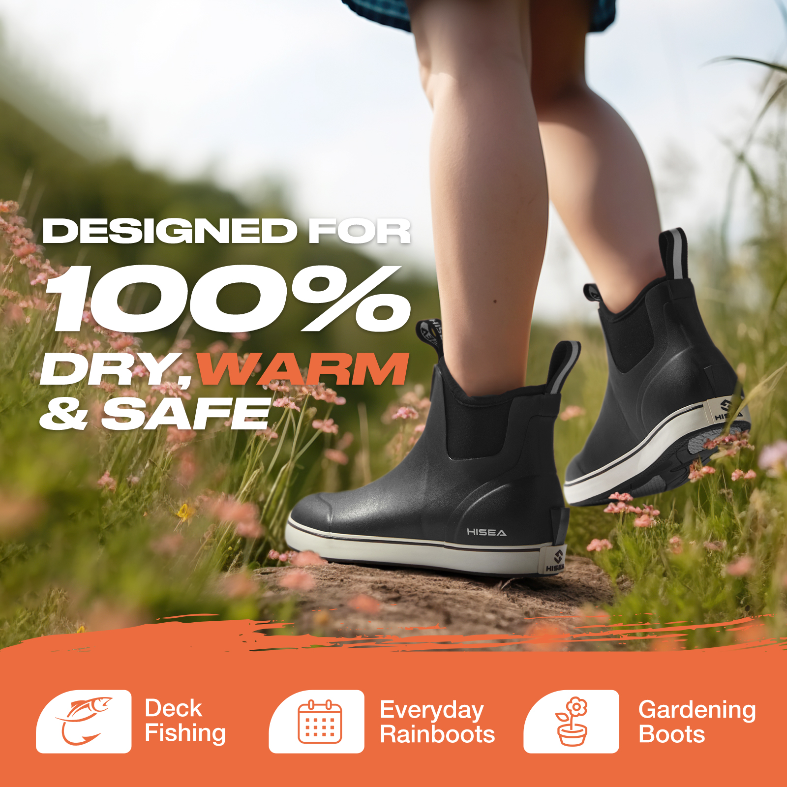 - 100% Keep Dry & Warm – Breathable, moisture-wicking mesh liners help ensure the boots stay dry on the inside, keeping the wet on the outside. It helps regulate foot temperature to keep you comfy in both cool and warm seasons.
