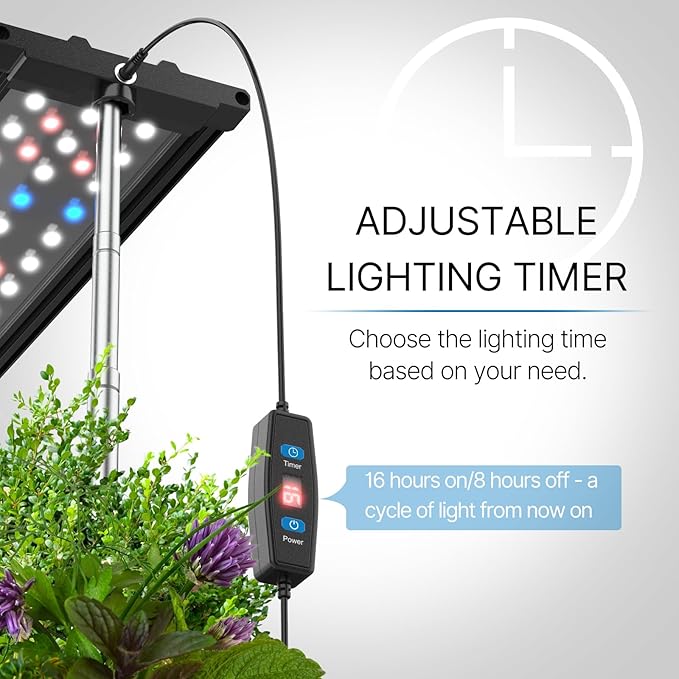 - Fully Customizable LED Lights: Comes with a smart timer controller. Set the lighting time at will than fixed two-speed adjustment, basing on what plants you grow. Recommend setting 16 hours on/8 hours off. 34-Watt LED lights to simulate the sunlight spectrum, promoting plants’ photosynthesis in any weather, also as a grow light for plant pot.