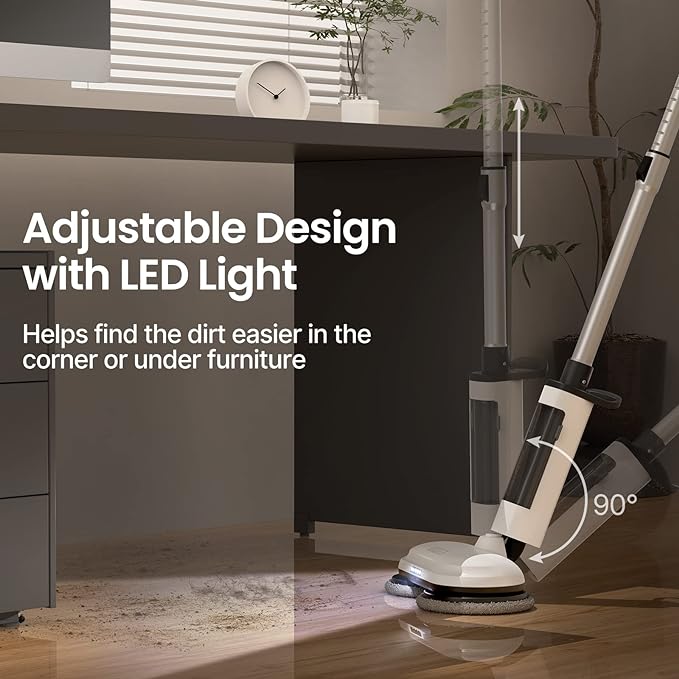 - 【2-in-1 Sprayer & LED Headlight】– We’ve got you covered from all angles with our wood floor mop! Not only does it come with a handy sprayer for adding just the right amount of liquid cleaner (no need to go overboard!), but it also boasts a built-in LED headlight. Say goodbye to hidden dirt in corners or under furniture – our LED headlight will illuminate every nook and cranny for a thorough clean!