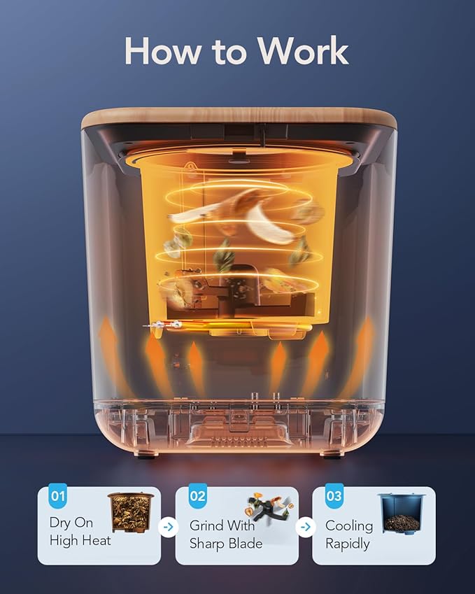 - 【Auto Electric Composter】 With employing high-temperature drying, milling, and cooling method, food waste is converted into pre-compost within 6 hours. After several days of fermentation, get a obtain a nutrient-rich fertilizer for your garden. This one-button appliance can be used to provide nourishment to your garden or pot plants.