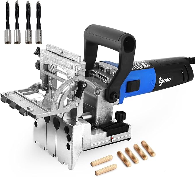 igooo Dual-Spindle Doweling Jointer DJ710, 710W 120V 60Hz, Wood Plate Dowel Joiner, 2X8mm and 2X6mm Drilling Bits, 80 Dowels