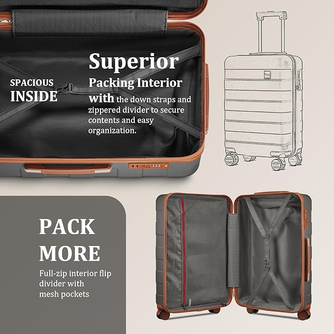 • 2.Suitcase with Spinner Wheels: We offer smooth and silent 360°double wheels design for you. Our carry-on luggage will take you to anywhere.