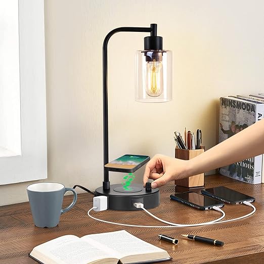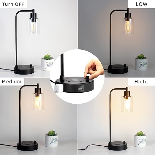 - 【Upgraded Wireless Charging Feature】Upgrade your bedside lamp with our latest model which features an upgraded wireless charging function. With built-in USB ports and an AC outlet (2-prong) at the metal base, our glass table lamps double as charging stations, saving you the time and hassle of finding charging cables. Compatible with both iPhone and Android devices, simply remove the phone shell and place it on the charging range (wait 2 seconds) to enjoy the convenience of wireless charging.