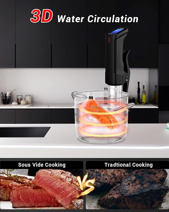 • Cook Like a Chef at Home: Achieves restaurant quality meals with ease by preserving juices, moisture and flavors thanks to precise temperature control; retains all of the health and nutrition benefits that are difficult to achieve from traditional cooking; included easy-to-follow sous vide cooking recipe book recommended by top chefs