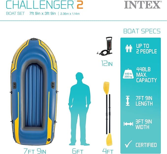- WEIGHT CAPACITY – Boating is always better with a pal, the Challenger recommended capacity is perfect for two adults, holding up to 300lbs in weight