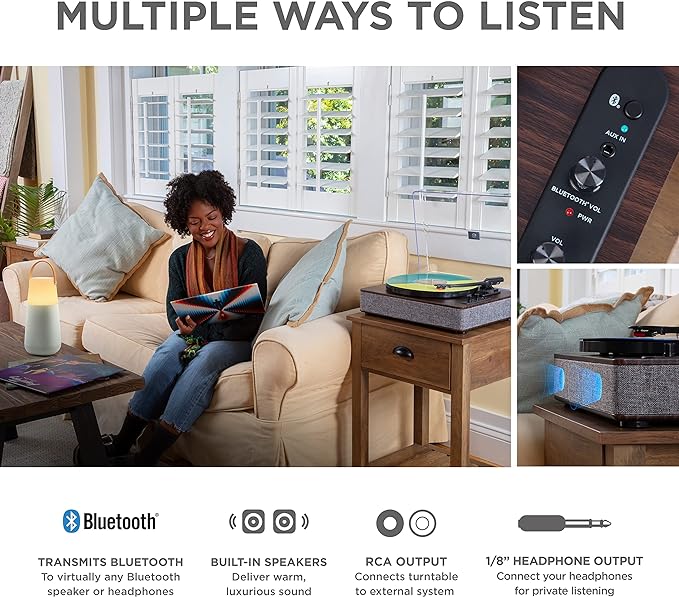• Connections – Features a headphone output for private listening along with RCA Outputs to connect Luxe LP to an external sound system