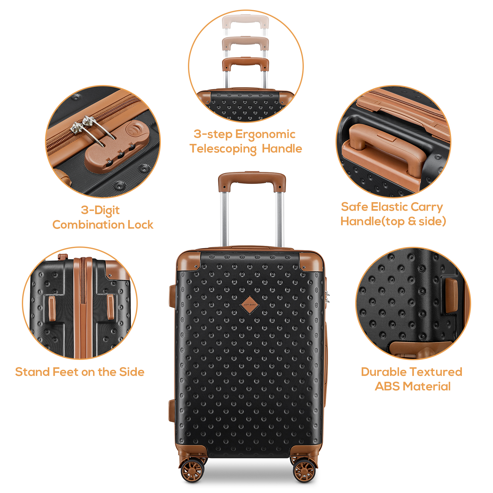 - 1.【PREMIUM MATERIAL: Durable Hard Shell】The Affordable Luggage Sets Include 20″ Carry on Luggage, a Weekender Travel Bag and a Toiletry Bag. This Trolley Case is Constructed with Lightweight and Highly Durable ABS Material. We Always Stand on the Customer’s Side to Test More Than 5000 Tests to Guarantee It Can Withstand the Checked Baggage and Keep Your Belongings Safe.20-Inch Suitcase(H*L*W:21.6″x 13.8″ x7.9″ ) with Ultra-strong Hardshells are Friendly, Giving a Safe and Reliable Outing Experience for Trip, Business, Weekend, School and more.