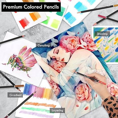 - RICH PIGMENTS: The silky smooth,velvety soft core lay down vivid color.colored core are rich pigments, Perfect for coloring & drawing etc. break-resistant cores produce incredible tone, perfect for blending and layering multiple colors.