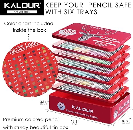 - VIVID VIBRANT COLOR: Kalour colored pencil set contains 180 professional colored pencils. You can find any color you need in these 180 unique colors to enrich your coloring book. Premium color pencils gift for artists beginners kids adults.