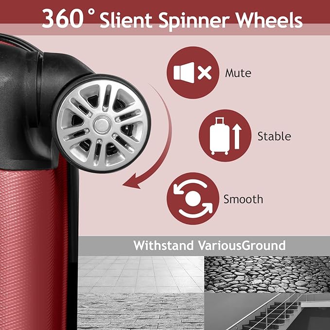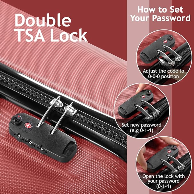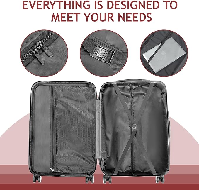 - 【Sturdy Materials】Our luggage set boasts a robust ABS shell and a black full liner, which is resistant to scratches, pressure, and water. Additionally, it is effortless to clean and remarkably lightweight, making it a breeze to carry around