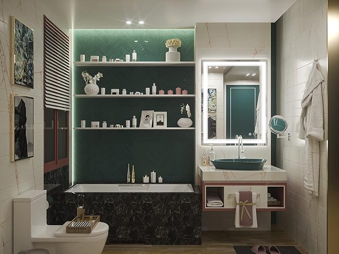 - [Installation & Packing] The bathroom LED mirror is designed with 8 butterfly mounting holes on the back (2 at the top and bottom), equipped with 4 wall anchors and screws to hang horizontally or vertically. Plug in or hard-wired. Rigid 5-ply custom packaging, so you don\’t have to worry about receiving a broken mirror.