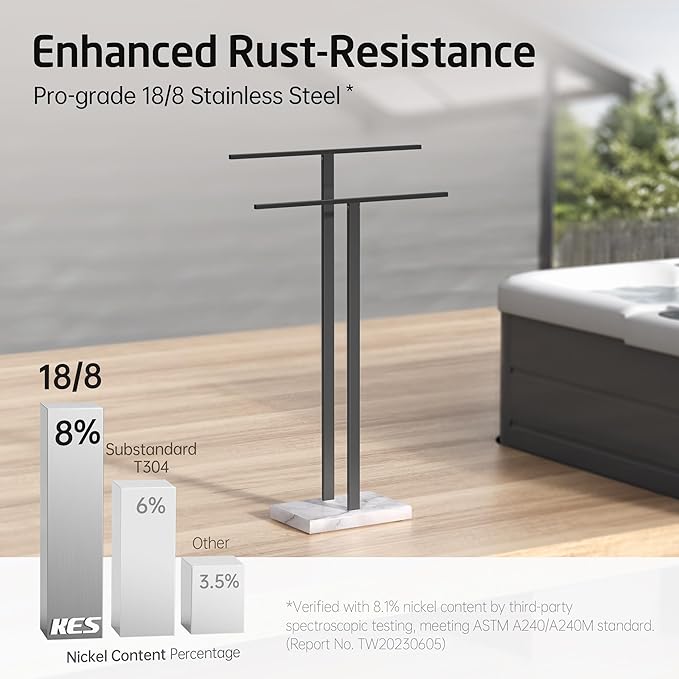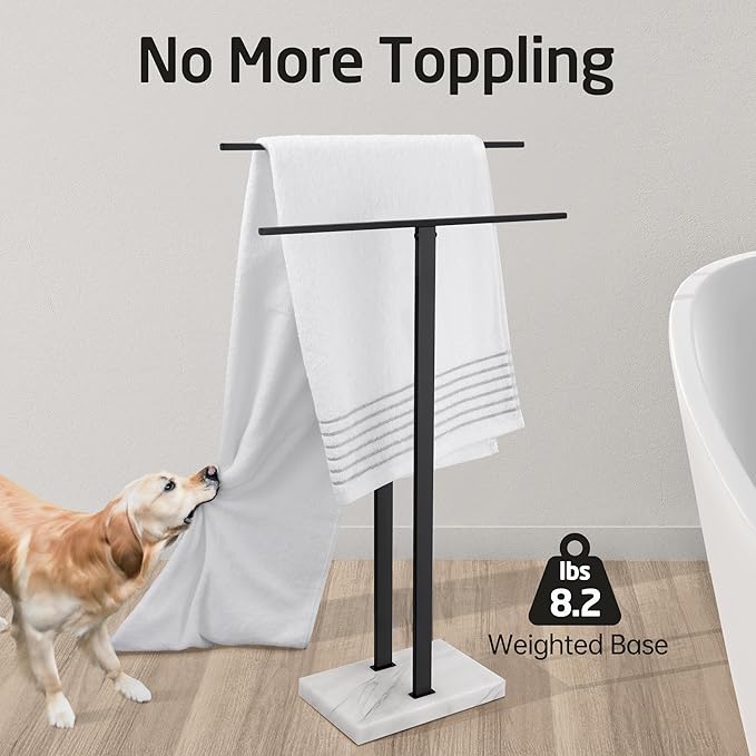 - Thick, Heavy Base – Keep Stable: KES marble base is 8.23lbs/3.75kg, 2kg heavier than similar products. Its thickness of 0.8\” (3cm) ensures stability as a towel racks for bathroom freestanding and allows for easy placement anywhere without the risk of tipping over.