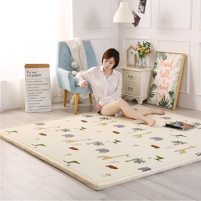 •  NON-TOXIC & SOFT & NON-SLIP : Our play mat uses 100% coral velvet fabric, High-Density memory foam filling, and Anti-Skid plastic drop cloth as the bottom. The carpet is breathable and comfortable, No Irritation to the Skin, and No Fade. Non-slip Design prevents shifting and skidding While Children or Pets are Playing or During Normal Daily Use;