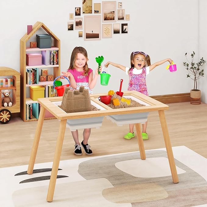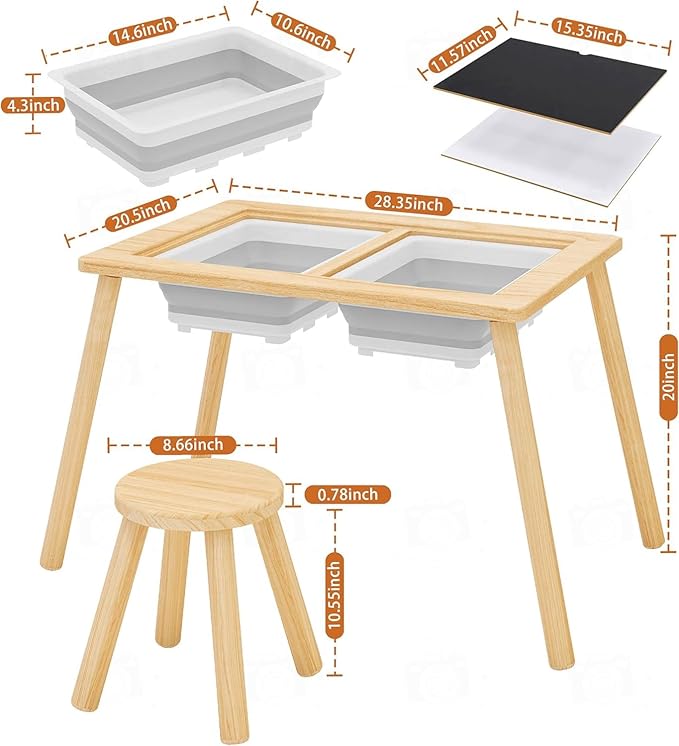 - 【What You Get】You will get 1 pieces of kids sensory tables, equipped with 2 pieces of storage bins and 1 small wooden round stools , they can be applied together and enough to meet your children’s daily use needs, you can also share them with your good friends
